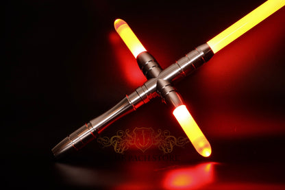 Arm yourself with the latest addition to our armory, the upgraded Sanken 2! Vanquish the light as the harbinger of death sweeps through the battlefield unparalleled for as long as your battery lasts. This is a single handed crossguard, lightweight and spins very nicely.